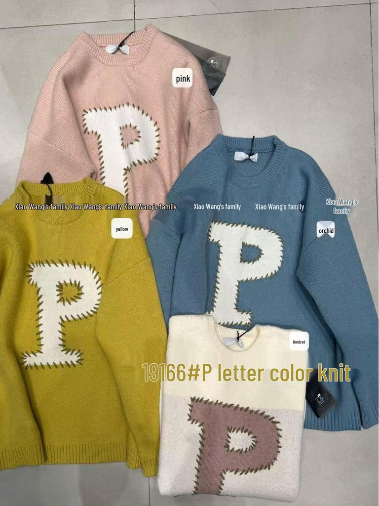Xiao Wang's Winter Loose Plus Size Korean Casual Letter Crew Neck Sweater