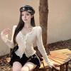Autumn Pure Desire V-Neck Ruffle Trim Knitted Sweater for Women - Slim Fit, Long-Sleeve, Short Style