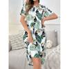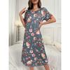 Große Größe, Rundhalsausschnitt, Kurzärmelig, Blaue Aprikosenblüte, Hauskleidung, Nachthemd, Kleid, Lässig, Bedruckte Damenbekleidung