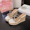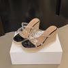 Neue Damenschuhe Strass transparent gewebtes Hanfseil Keilabsatz hoher Absatz coole Pantoletten Temperament
