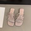 Strassschleife Ein-Wort-Slipper für Damen-Sommerbekleidung, neuer sanfter passender Rock, schöne Sandalen mit dickem Absatz