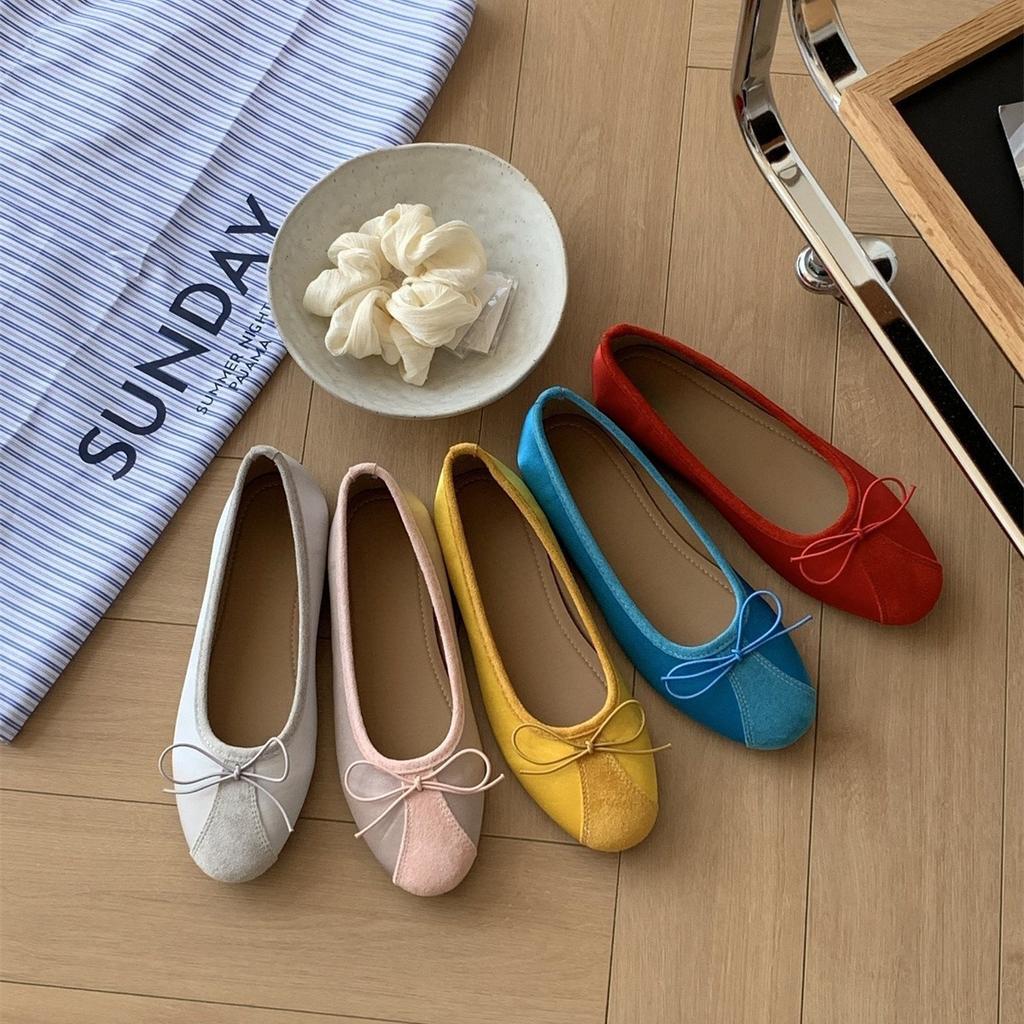 Retro Oma-Schuhe mit flacher Sohle Frühling und Sommer Nische Spleißschleife Ballettstil flacher Ausschnitt beladene Schuhe weichsohlige Einzelschuhe Frauen