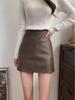 Damen Schwarzer PU-Leder A-Linien Minirock – Slim Fit, Vielseitiger Midi für Herbst/Winter