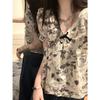 Damen Französische Retro Blumen Puffärmel Babydoll Bluse