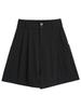 Women's Black High-Waist Wide-Leg Casual Shorts - Slim Fit, Anti-Exposure, Autumn Style, Small Size