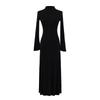 Elegant High Neck Knitted Dress - Autumn/Winter Slim Fit, Solid Color, High Waist Umbrella Skirt.
