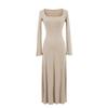Schlankmachendes Strickkleid im französischen Stil - Eckiger Ausschnitt, Hohe Taille, Weiter Schwung, Perfekt für Herbst und Winter