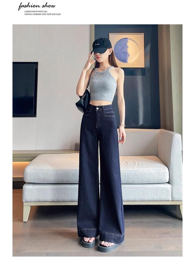 Women's Dark Blue Soft Denim High-Waisted Wide-Leg Jeans – Light Summer Style 2025