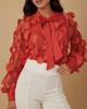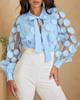 Französischer Hofstil 3D Blumen Chiffonbluse mit hohlen Laternenärmeln