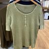 2025 Spring/Summer Women's Japanese-Style Henley Neck Short Sleeve Knitted Sweater Top