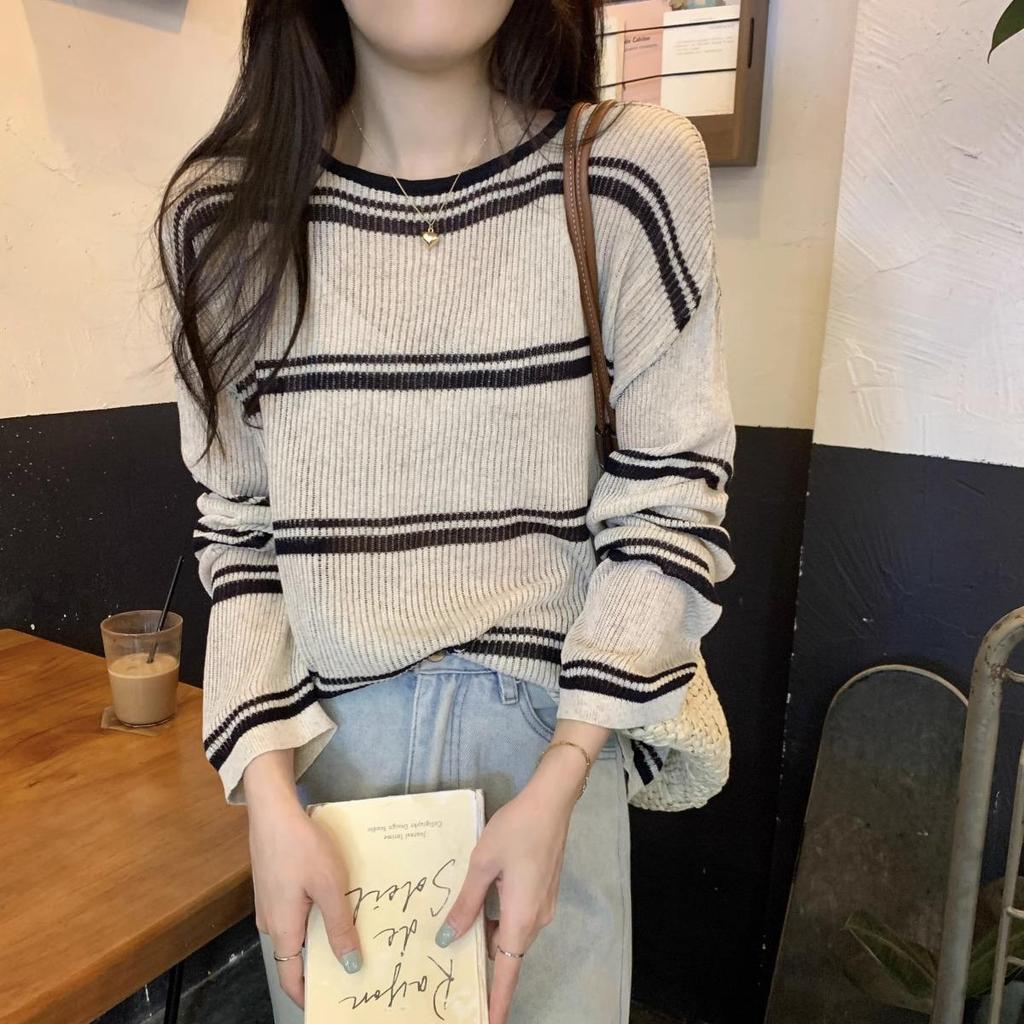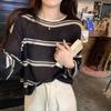 Koreanischer gestreifter Farbblock-Strick Langarm Damen Sommer-Überwurf: Lockeres, Schlankmachendes, Sonnenschützendes Hemd