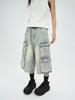 Unisex Vintage Distressed Multi-Pocket Workwear Capri Jeans