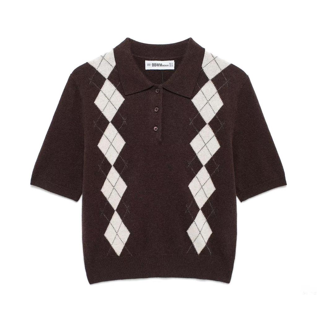 Werten Sie Ihre Warmwettergarderobe mit diesem schicken Damenstricktop auf, gefertigt aus einem dünnen Polyestermaterial für ein leichtes Tragegefühl.. Entworfen für eine schlanke Passform, verfügt es über ein stilvolles Argyle-Muster, das einen Hauch klassischer Raffinesse verleiht.. Das Oberteil ist mit einem Umlege-Polokragen detailliert und hat halbe Ärmel, was es zur perfekten Mischung aus Komfort und preppy Eleganz macht.. Ideal für Frühling und Sommer, dieses Stück ergänzt mühelos sowohl lässige als auch elegante Ensembles.