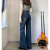 Women's Non-Clingy Fleece-Lined High-Waisted Slimming Flare Jeans for Autumn/Winter - Wide-Leg, Hip-Covering Style.