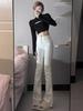 White High-Waisted Elastic Micro-Flare Jeans: Slimming, Floor-Sweeping, Perfect for Spring & Autumn