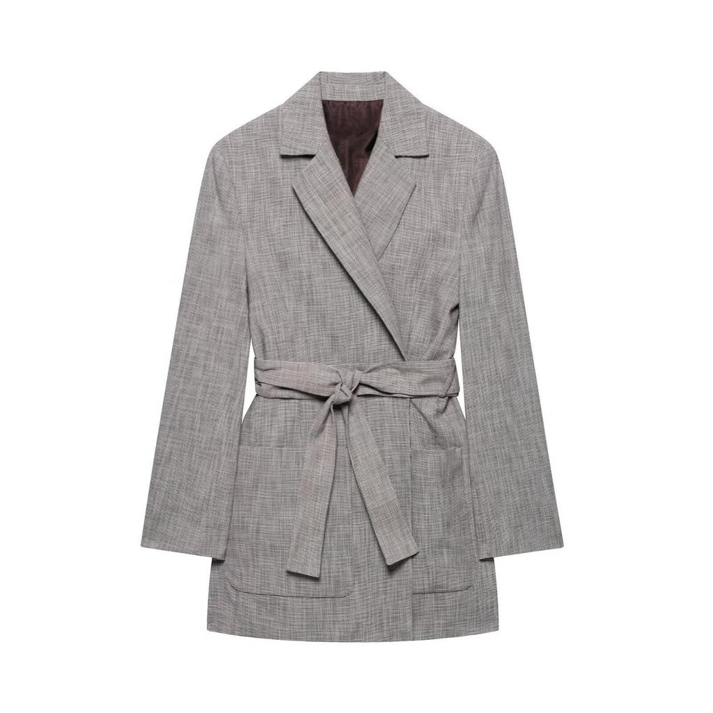 Werten Sie Ihre Sommergarderobe mit dieser schicken, schmal geschnittenen, gegürteten, lässigen, strukturierten Anzugjacke auf, die speziell für Frauen entworfen wurde, die Stil und Komfort schätzen.. Diese Jacke aus hochwertigem Polyester bietet eine perfekte Mischung aus Strapazierfähigkeit und Atmungsaktivität und ist somit ideal für warmes Wetter.. Die strukturierte Oberfläche verleiht einen Hauch von Raffinesse, während das Gürteldesign Ihre Silhouette wunderschön betont.. Perfekt für sowohl professionelle als auch legere Anlässe, diese Jacke vereint mühelos Mode und Funktionalität.