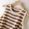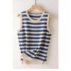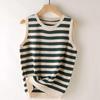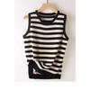 Women's Spring-Summer Striped Ice Silk Knit Tank Top - Loose, Slimming, Sleeveless, Round Neck