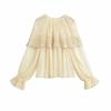 Elevate your wardrobe with this elegant women's top, perfect for the 2025 spring and summer seasons. Crafted from high-quality polyester, this top ensures a comfortable and breathable fit. It features exquisite lace patchwork detailing, adding a touch of sophistication to the classic, solid pattern. Designed with long sleeves and a loose fit, it offers effortless style and ease of movement. The round neckline provides a timeless look, making it a versatile choice for various occasions.
