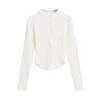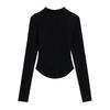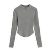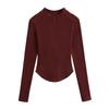 Spring 2025 Women's Small Waist Slimming Curved Velvet Half-Zip Long Sleeve T-shirt