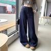Women's Dark Blue High-Waist Plus Size Wide-Leg Jeans for Spring and Autumn 2025 - Loose Draped Straight-Leg Floor-Length Pants