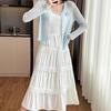 Embrace the enchanting allure of the season with this elegant fashion set featuring a delicate fairy camisole dress paired with a cozy knit cardigan. This combination offers a harmonious blend of femininity and comfort, making it perfect for both casual outings and special occasions. The camisole dress, with its ethereal design, flows gracefully, while the knit cardigan provides warmth and style, effortlessly enhancing your silhouette. Whether you're enjoying a springtime stroll or attending a garden party, this set ensures you do so with a touch of fairy-tale elegance.