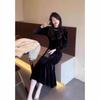2024 Herbst-Winter Koreanischer Stil Schlankmachendes Samt-Midikleid