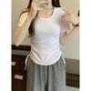 2025 Korean Style Slim Fit Short Sleeve Women's T-Shirt with Round Neck and Drawstring.