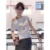 Women's Retro Off-Shoulder Letter Print White T-shirt - Slim Fit, Slanted Shoulder, Short Sleeve Summer Top