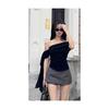Würziges schulterfreies T-Shirt mit Bändern, kurzen Ärmeln und offenem Rücken - Plissiert, figurbetont, schickes Sommerdesign für Damen.