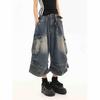 Amerikanische Retro Damen Multi-Taschen Denim Capri Shorts - Locker, Weitbein, Mittellang Sommer Arbeitskleidung