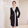 This Black & White V-Neck Color Block Mid-Length Dress is designed to be both slimming and flattering, making it an ideal choice for professional women's attire during spring and autumn. Crafted from high-quality viscose material, this dress offers a comfortable and breathable fit. Its elegant color block design and classic V-neck create a sophisticated and stylish look suitable for the office or formal gatherings. The mid-length cut adds to its versatile and timeless appeal.