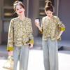 Step into a blend of tradition and style with this retro-inspired loose top, perfect for springtime. Crafted from durable polyester material, this top features a charming floral jacquard pattern that adds a touch of elegance. Its medium thickness makes it an ideal choice for transitional weather. The long sleeves offer both coverage and a fashionable silhouette, while the turn-down collar gives it a sophisticated twist. Designed for women, this top is both comfortable and stylish, featuring classic frog buttons for a unique, vintage touch.