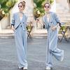Elevate your spring wardrobe with this two-piece set featuring a patchwork V-neck jacket and wide-leg pants. Crafted from premium polyester, this ensemble offers a solid pattern for a sleek and sophisticated look. The sportive style ensures both comfort and fashion-forward appeal, making it a versatile choice for various occasions. Whether you're heading to a casual outing or a stylish event, this set promises to keep you effortlessly chic.