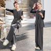 Frühling 2025 Gestreifte Taillenbetonende Weste & Weitbeinige Hose Zweiteiliges Set