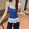 Rotes Buchstaben-Stickerei Colorblock Tanktop - Damen Schlankmachend Ärmellos Sommerstil