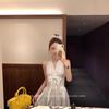 Exquisites weißes Neckholder V-Ausschnitt Schleifentaille langes Sommerkleid (Ausgabe 2025)