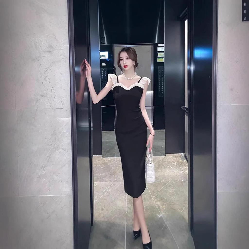 2025 French Little Black Dress: Sexy Wood Ear Edge, Slimming Waist, Slit Bodycon