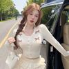 Women's Casual College-Style Bow Knit Cardigan - Small, Round Neck, Autumn/Winter