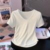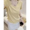 Women's V-Neck Pleated Waist-Slimming Yellow Modal T-Shirt - Short-Sleeve Summer Top