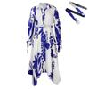 This stylish plus-size women's dress is designed with an eye-catching irregular lapel and a sophisticated temperament print. Made from high-quality polyester, it offers both comfort and durability. The flattering silhouette accentuates your curves, making it a perfect choice for various occasions, from casual outings to formal gatherings. Enjoy a blend of elegance and style with this uniquely crafted dress that celebrates both European and American fashion sensibilities.