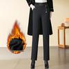 Bleiben Sie in den kühleren Monaten kuschelig und stilvoll mit diesen fleecegefütterten Hosen.. Diese Hosen mit geradem Bein sind mit einem elastischen hohen Bund für zusätzlichen Komfort entworfen und bieten eine schmeichelhafte Passform für Übergrößen.. Die aus hochwertiger Wolle gefertigte Hose bietet Wärme und Atmungsaktivität während des gesamten Herbstes und Winters.. Perfekt für ungezwungene Ausflüge, vereinen sie mühelos Komfort mit einem schicken, entspannten Stil.