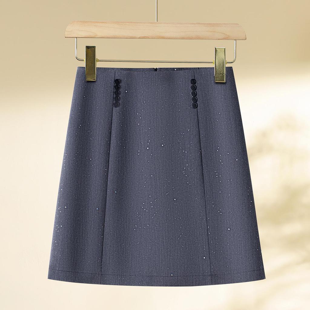 Elevate your wardrobe with this chic high-waisted mini A-line skirt, perfect for both spring and autumn seasons. Crafted from high-quality polyester, this stylish piece features a solid gray color adorned with subtle sequins, adding a touch of sparkle to any outfit. Its timeless A-line silhouette ensures a flattering fit, making it a versatile addition to your collection. This skirt pairs effortlessly with both casual and formal tops, offering endless styling possibilities for any occasion.