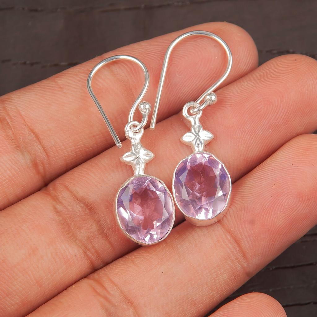 Natürlicher Morganit Edelstein 925 Sterlingsilber Schmuck Handgefertigte Ohrringe 1,30" EE-6-11