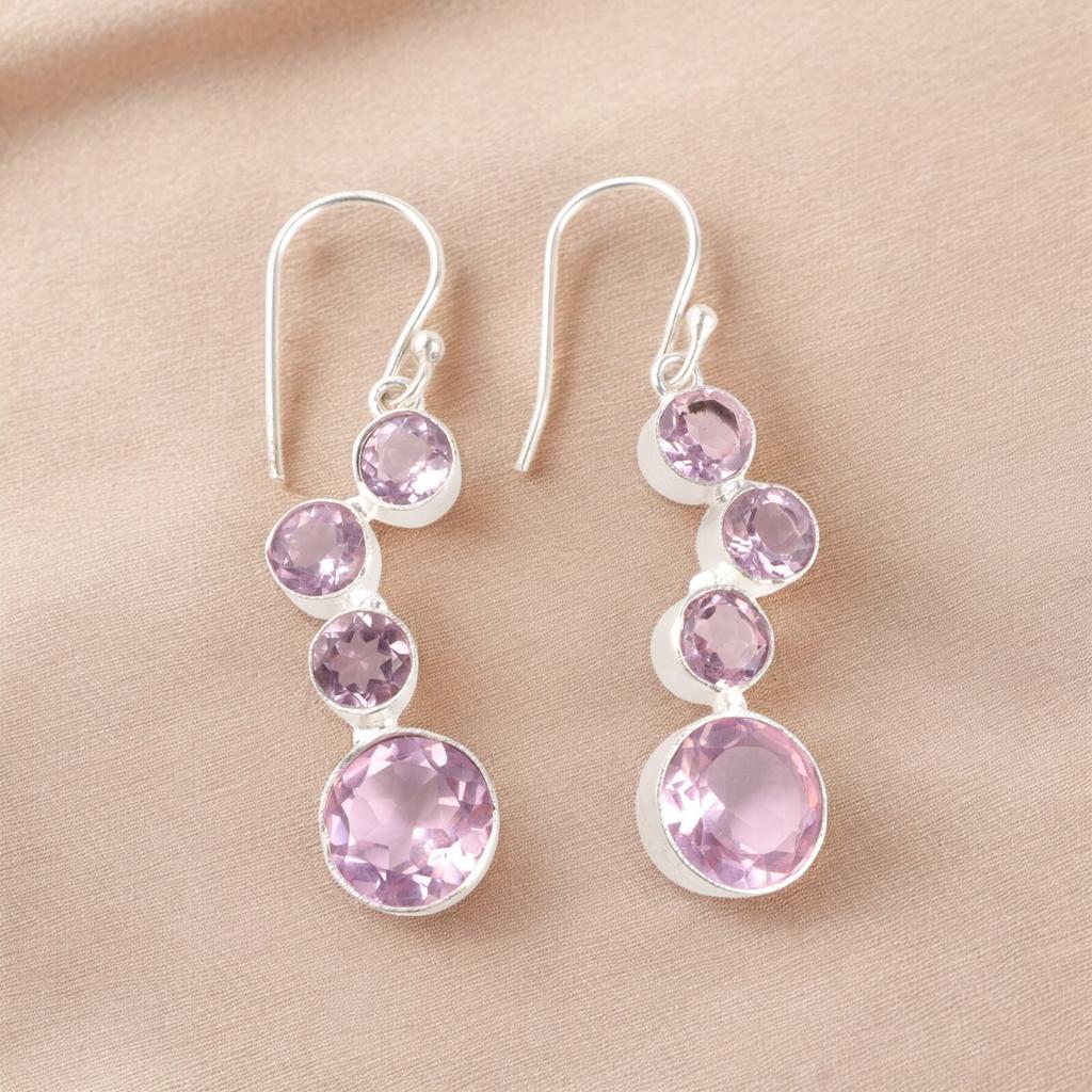 Natürliche Morganit Edelstein Ohrringe 925 Sterlingsilber Handgefertigter Schmuck Zum Geschenk EE-161-13