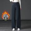 2024 Women's High-Waisted Warm Wide-Leg Velvet Denim Pants