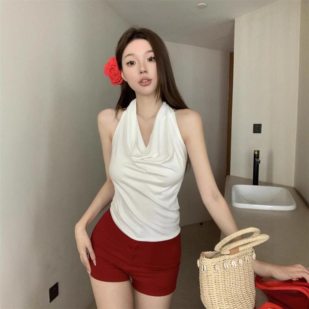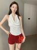 Spicy Girl Weißes Neckholder-Tanktop mit Wasserfallausschnitt - Damen Sommer Ärmelloses Rückenfreies Top.