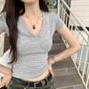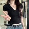 Korean V-Neck Short Sleeve T-Shirt - Women's Summer Trendy Petite Hot Girl Top