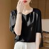 Werten Sie Ihre Sommergarderobe mit diesem schicken und eleganten Modeoberteil auf, gefertigt aus luxuriösem Satin. Entworfen mit lockerer Passform und kurzen Ärmeln, bietet es sowohl Stil als auch Komfort für warmes Wetter.. Das einfarbige Muster strahlt zeitlose Raffinesse aus, während das herausragende Merkmal der schillernde Diamantkragen ist, der einen Hauch von Glamour verleiht.. Perfekt sowohl für lässige Ausflüge als auch für besondere Anlässe, ist dieses Oberteil ein vielseitiges Must-Have für jede modebewusste Frau.
