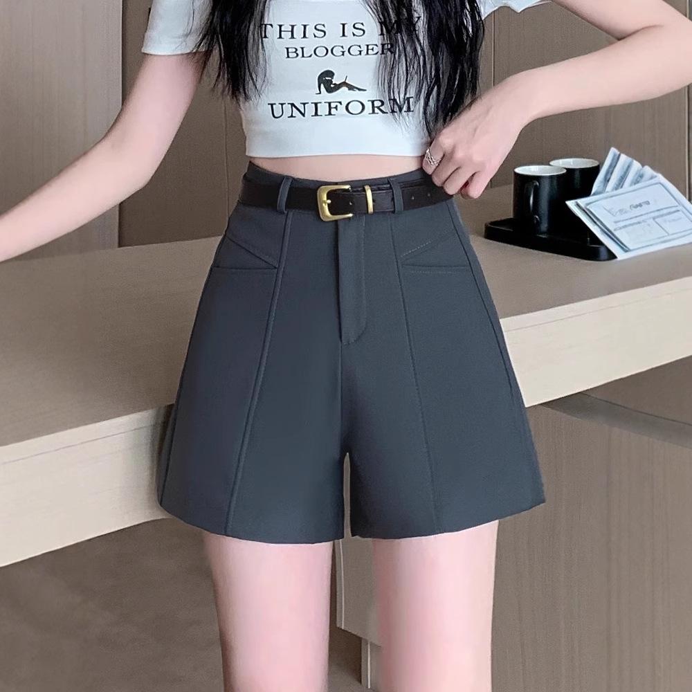 Damen Graue High-Waist A-Linien Shorts - Schlankmachend, Locker, Lässige Sommerbekleidung