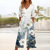 Damen Lockerer Lässiger V-Ausschnitt Bedruckter Jumpsuit Slim Fit Weitbeiniger Jumpsuit Weitbeiniger Jumpsuit